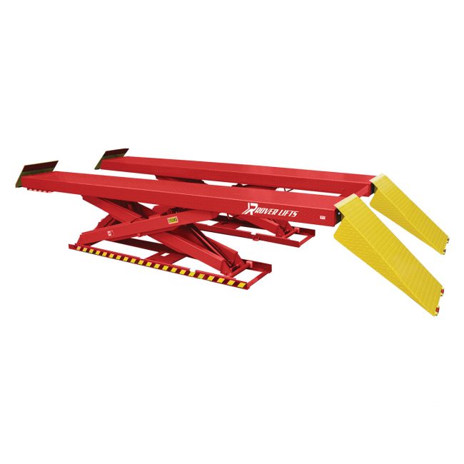 FLUSH-MOUNT SCISSORS LIFT Lifting Capacity: 3.5t (8,000 lbs) Lifting Time: 51 Seconds FEATURES Electric/Hydraulic power system Dual synchronous cylinders are applied to assure the lifting level on both platforms Platforms are designed to be extended. It is suited for most of the car Automatic safety device. The safety release is operated by air cylinders Electro-air…
